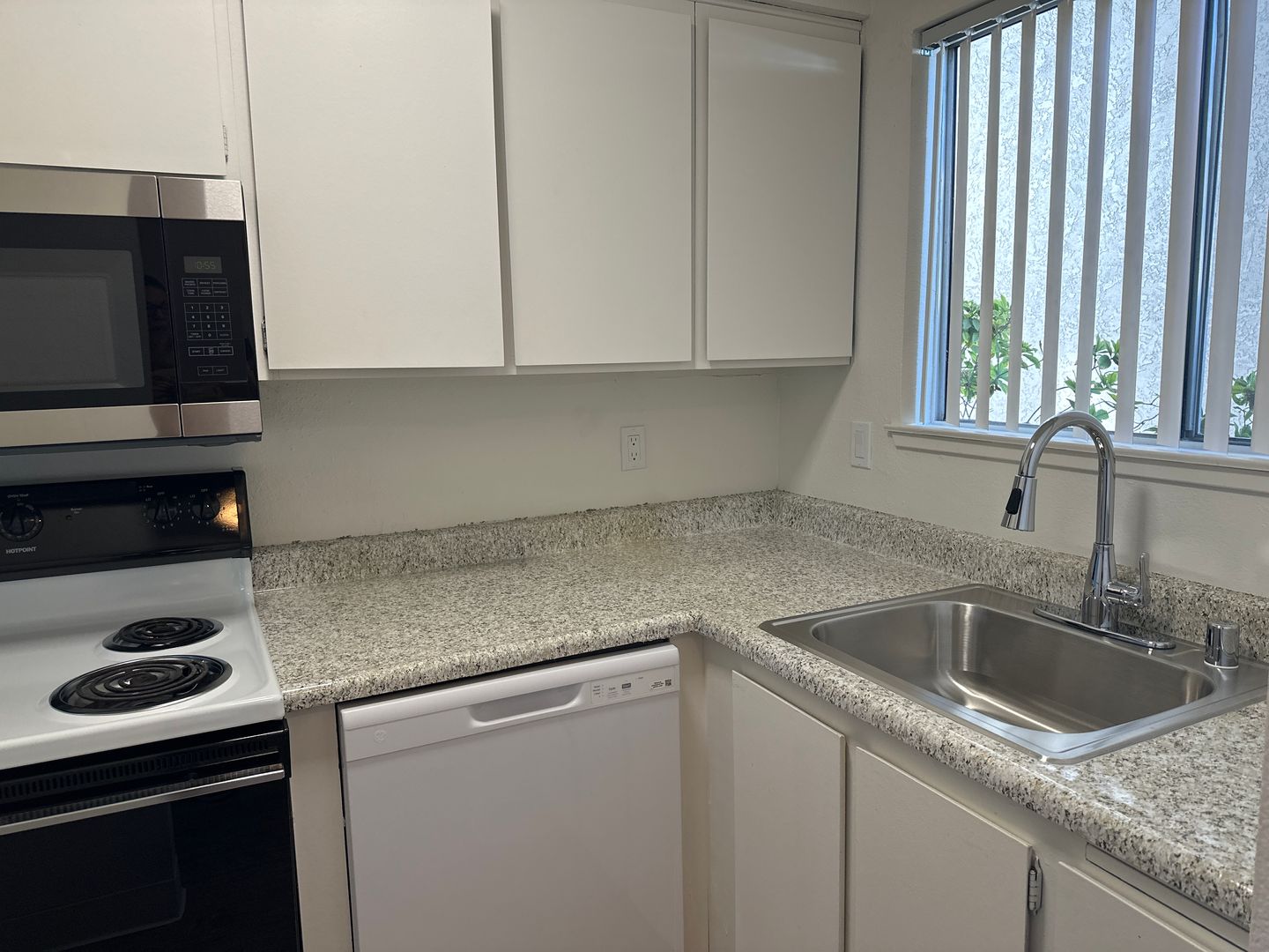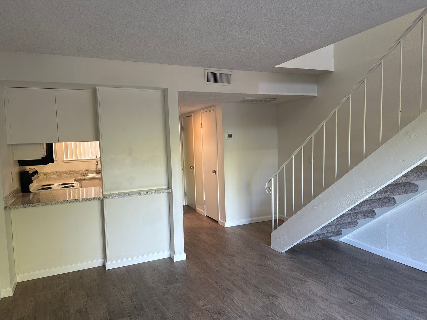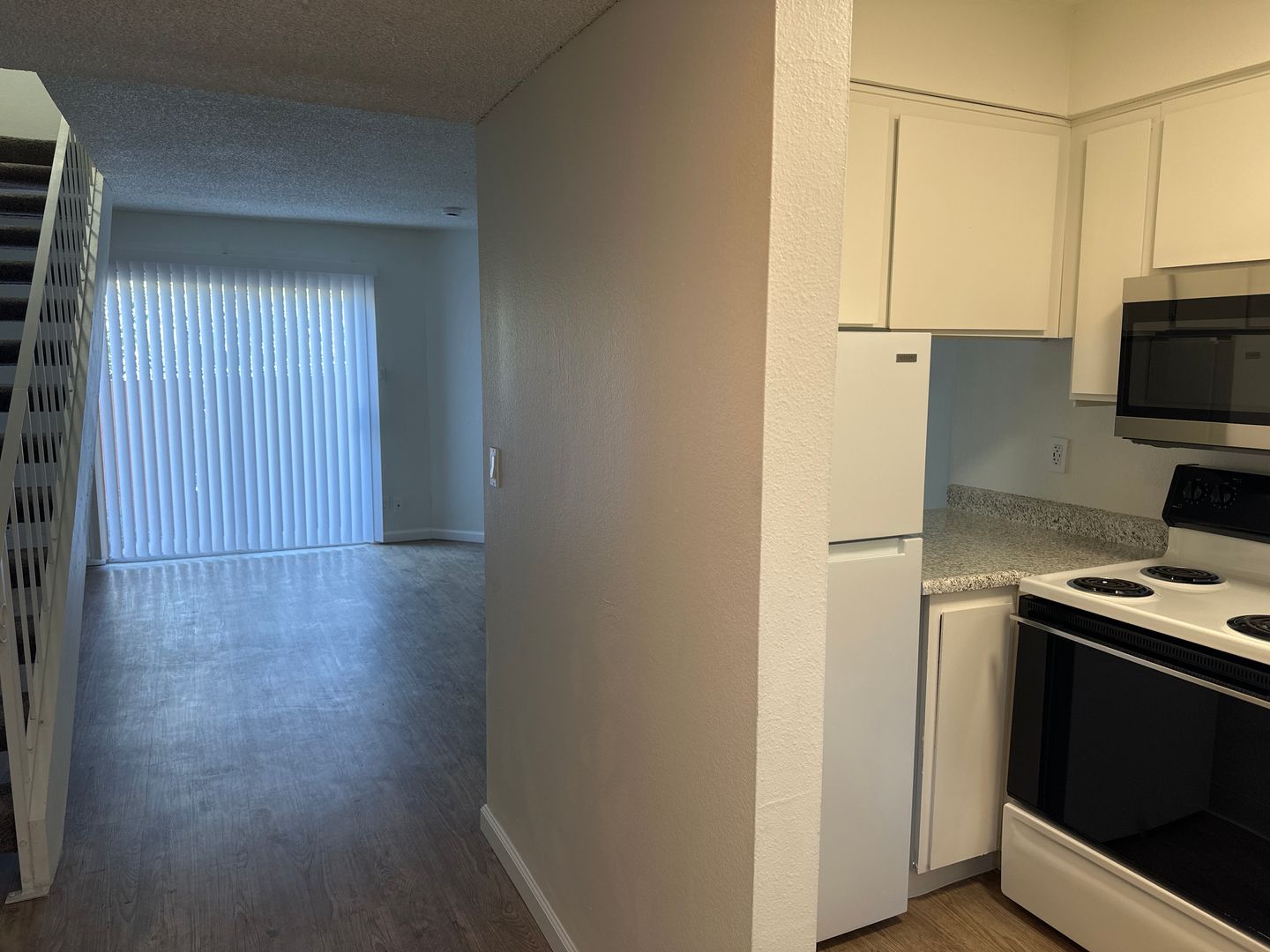 This 1 bedroom 1 bath loft-style townhome is located in the gated community of Pavilion Townhomes close to Loehman's Plaza, restaurants, shopping, entertainment, and easy freeway access. The living space features central heating and air, new vinyl plank and carpet throughout. The open style kitchen offers white appliances, and features a new refrigerator, electric stove, new dishwasher, and new microwave, with an overabundance of cabinet space. It offers open concept dining. The large upstairs bedroom is loft style and has a walk-in closet, separate vanity and full bathroom. Also included is a gated small yard. The unit comes with one gated assigned parking space for your convenience. There is additional second car or guest vehicle spaces available, a sparkling pool, and coin op laundry. $50 monthly charge for water, sewer, garbage.